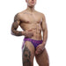 The oval front hole creates a snug, soft cock ring sensation, enhancing your feel and confidence. Its 2cm jacquard leg straps, presented in a striking Tyrian Purple, offer secure support while adding a bold pop of colour. Crafted from silky polyamide fabric, this jockstrap promises a smooth, breathable experience all day long.
